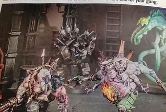 Las dos imágenes del fondo son transformaciones, pero las dos del frente no: Es el ogrete del Caos de WQ Blackstone Fortress y el otro es de la caja de Kill Team Rogue Trader, por lo que se podrán aprovechar mas esas figuras, además de en sus juegos y en W40K.