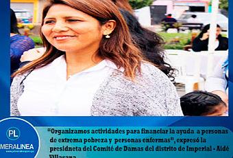 Así lo preciso la presidenta del Comité de Damas – Aidé Villasana de Pariona – tras resumir que su grupo de trabajo realiza actividades de ayuda social a favor de los que menos tienenLa presidenta del Comité de Damas de Imperial - Aidé Villasana de Pariona, invitó a la población a participar de las actividades por el 107° aniversario de creación política de la otra capital comercial de Cañete. La programación –dijo – se inicia este sábado 05 de noviembre con la elección y coronación de la reina del distrito.A diferencia de otras jurisdicciones – aseguró que el grupo de trabajo que lidera no genera gastos a la Municipalidad y al Comité de Fiestas. Explicó que con tiempo se prepara el plan de trabajo para concretar el apoyo de importantes firmas comerciales que permitan el financiamiento del evento de belleza.“Nuestra elección y coronación de Mis Imperial, es realizada gracias al apoyo de personas particulares y de la empresa privada. Dela Municipalidad no sale un sol”, continuó diciendo.De otro lado – informó que el Comité de Damas no solo centra su trabajo en la organización de la elección y coronación de la Reina de Imperial o la chocolatada por Navidad.Precisó que el accionar es mucha más extenso y se proyecta hacia los que menos tienen a través de la ayuda social. “Organizamos actividades para financiar la ayuda a personas de extrema pobreza y personas enfermas”, agregó. (Reporte Regional)