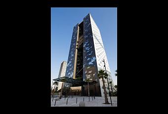 Recibimos hace unos días la información de este hotel de Barcelona que no conocíamos. Justo al lado de las torres de Toyo Ito de las que hablamos anteriormente (pulse aquí), su aspecto exterior es llamativo, ya que lo forman dos torres unidas por un jardín vertical que acompaña a las escaleras que quedan visibles a la calle. Las fachadas (tres blancas y una de color negro) están perforadas por aberturas en forma de palmera que se convierten en el símbolo de las habitaciones.Es un proyecto de Jean Nouvel y José Ribas Folguera (Ateliers Jean Nouvel y Ribas & Ribas).