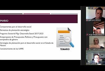 Toluca, Estado de México.- Para continuar con el fomento del desarrollo de las competencias profesionales, encaminadas a mejorar la gestión pública, el Consejo de Investigación y Evaluación de la Política Social (CIEPS) y la Facultad de Ciencias Políticas y Sociales de la Universidad Autónoma del Estado de México (UAEM), reiniciaron las clases del Diplomado Desarrollo Social y Humano.Con la participación de cerca de 40 servidores públicos de la Secretaría de Desarrollo Social, que encabeza Eric Sevilla Montes de Oca, inició al módulo VI de esta actividad académica, a cargo del Doctor Porfirio Mauricio Gutiérrez Cortés.Mediante la plataforma digital Zoom, el expositor habló de los componentes y las estrategias de planeación para el desarrollo social en el Edoméx, dando a conocer metodologías, indicadores, programas y proyectos que permitan eficientar esta labor.El diplomado en Desarrollo Social y Humano comenzó de manera presencial el 22 de noviembre de 2019, y debido al confinamiento por COVID-19, hoy ofrece una innovadora alternativa para la profesionalización.Con ello, el Gobierno del Estado de México contribuye a la consolidación de nuevas competencias empírico-analíticas, para incentivar el desempeño de los servidores y fortalecer las políticas públicas, en beneficio de los mexiquenses.
