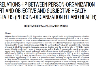 Relación entre el ajuste persona-organización y estado de salud objetivo y subjetivo Merecz, D; Andysz, A. Internat. Journal of Occup. Medic. and Environmental Health 2012;25(2):166–177