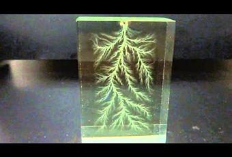 Entonces, se establecen las mismas condiciones que provocan la caída de un rayo: Cuando los electrones de la de rayos catódicos reúnen las partes cargadas del material aislante, esas porciones al instante se convierten en conductores de la electricidad y se puede obtener un impacto de rayo en miniatura, pero de gran alcance.