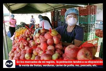 En los mercados de mi región, la población tendrá a su disposición la venta de frutas, verduras, carne de pollo, res y pescado, así como productos de higiene y limpieza personal y del hogar.