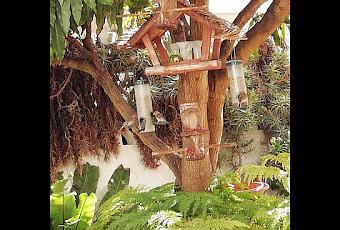 Compartir cada día una parte de la vida de los pájaros, sus diálogos, su acercamiento, presentir su lucha, sus batallas y observar el ir venir inquieto entre alegrías y temores. Van dejando plumitas suaves junto a los pequeños menos temerosos y desparramando en el aire su canto, se posan en el mango, árbol generoso, con patitas finas y vivaces. Son el primer sonido de la mañana mezclado con el gallo adoptado que le gusta volar aparentemente libre como ellos y el último del atardecer.