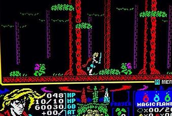 Según parece el juego para Spectrum y MSX está encarando las últimas fases de producción, y si comparamos la imagen con las primeras capturas que nos llegaron podremos observar que parece que el cariz RPG ha cobrado mayor importancia, dados los diferentes atributos del personaje que vemos en el marcador, los objetos que podemos recoger, etc. Llama también la atención el estupendo colorido de la pantalla y la aparición de una tecla para, imaginamos, acceder a un menú donde trastear aún un poco más...