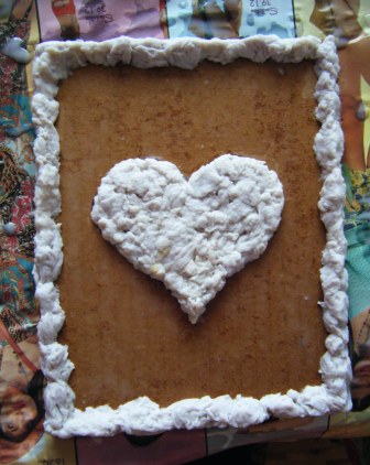 7.- Cubrir con el papel arrugado, dando forma a los volúmenes del corazón y marco.