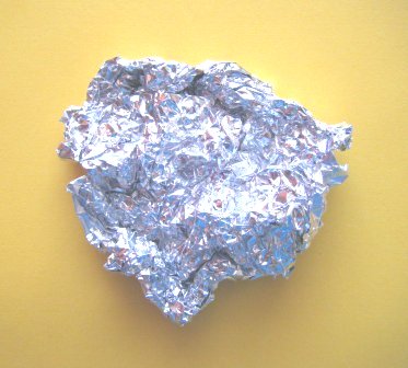 4.- Recortar un rectángulo de papel aluminio un poco más grande que el cartón y arrugarlo
