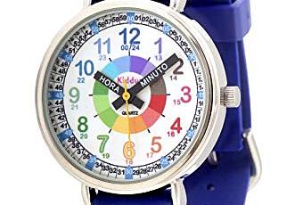 KIDDUS Reloj Educativo para niño, Chica, Chico. De Pulsera, analógico. Time Teacher fácil de Leer para Aprender la Hora. Ejercicios incluídos. Manillas Escritas. Azul