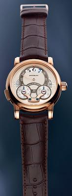Este mecanismo patentado como “Rising hours” se explica por sí mismo en particular dos veces al día: a las seis en punto de la mañana, cuando el número 6 recortado aparece a la izquierda en azul pálido y en negro a la derecha para indicar que se acaba la noche y empieza un nuevo día; y a las seis en punto cada tarde, cuando la iluminación negra a la izquierda deja paso al azul pálido de las horas nocturnas a la derecha.