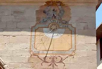 El bonito reloj solar es bastante declinante hacia el Este con el habitual gnomon según eje del mundo. Su construcción en 1884 iba a quedarse obsoleta en 1900 al decretarse la hora nacional frente a la local que daban los cuadrantes solares. El reloj se conserva bien en hora y en las proximidades del solsticio de verano queda en sombra a partir del mediodía.