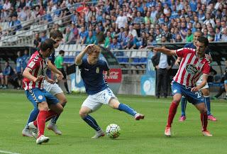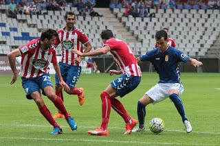 El Lugo se había empeñado en las declaraciones previas en otorgar favoritismo al conjunto azul, una burda -por manida- manera de echar responsabilidad a los recién llegados y ver si se podía nadar a favor y pescar algo. Lo consiguió pronto con Carlos Pita en un monumental chutazo en el catorce. Una falta lanzada por Susaeta fue, una vez más, la llave para el gol de la igualada. En esta ocasión, Jonathan Vila peinó el balón con su coronilla, con ese peculiar movimiento que patentara durante muchas temporadas -entre 1970 y 1981- el alicantino Juan Manuel Asensi con el Barça. El Real Oviedo asumió sus virtudes y buscó el juego por alto y a balón parado. Borja Gómez remataría al palo en el 32, pero tuvo la réplica en Pablo Caballero que cebeceó a bocajarro para que Esteban sacase una grandiosa mano. La primera parte se había ido con un once azul tenso, poco lúcido en defensa, empujado por Pablo Hervías en las bandas y con el resto tratando de encontrarse en la incómoda situación de remar contra corriente.