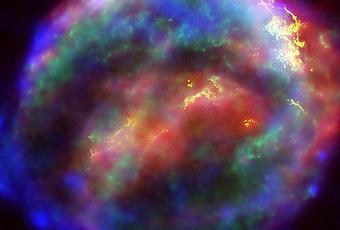 "Por ejemplo, los datos infrarrojos están dominados por el polvo interestelar caliente, mientras que las observaciones de rayos X óptica destacan las diferentes temperaturas del gas", agregó Blair, profesor de investigación en el Departamento de Física y Astronomía en la Universidad Johns Hopkins, y el astrónomo principal del Las observaciones de Spitzer. "Se necesita una serie de observaciones para ayudar a entender la compleja relación que existe entre los diversos componentes". La explosión de una estrella es un evento catastrófico. La explosión rasga a la estrella y libera una onda de choque más o menos esférica que se expande hacia el exterior a más de 10.000 kilómetros por segundo, como un tsunami interestelar. Esta onda se propaga hacia el espacio circundante, barriendo cualquier tenue gas interestelar y polvo en una envoltura extensible. En ciertos casos, las regiones circundantes incluyen el material derramado por la estrella progenitora en un viento estelar antes de la explosión, en las primeras fases de su evolución. El material estelar expulsado por la explosión traza rutas inicialmente detrás de la onda de choque, pero finalmente se pone al día con el borde interior de la envoltura y se calienta a temperaturas de rayos-X.