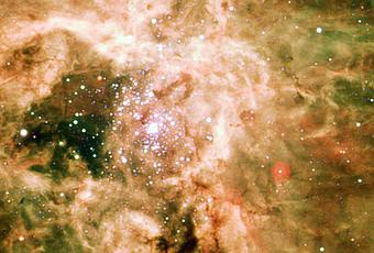 Situada en la dirección de la constelación de Dorado en la Gran Nube de Magallanes, el objeto resplandeciente conocida como NGC 2060 es la secuela de una supernova. Estas potentes explosiones vienen a ser la sentencia de muerte de estrellas masivas, después de la explosión, la estrella moribunda despide chorros de material procedente de su superficie, hacia el espacio circundante a gran velocidad calentado a millones de grados. Cerca de este remanente, habitan dos cúmulos estelares, uno en el interior de la nube de polvo y gas llamado NGC 2070, y otro muy cerca llamado R136. Fue descubirta por John Herschel en 1836.