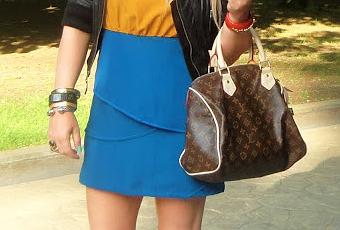 Hoy quiero hacer un guiño a esa tendencia con un little dress en azul klein y mostaza.