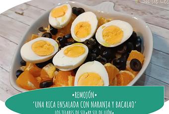 En esta ocasión no añadí cebolla pero si te gusta, no dudes en ponerle. El aporte de la naranja fresquita es la guinda de esta rica ensalada. El bacalao también tiene su 'qué' lo escaldé 10 minutos en agua caliente infusionada en AOVE y laurel. El sabor que le aporta es muy rico.