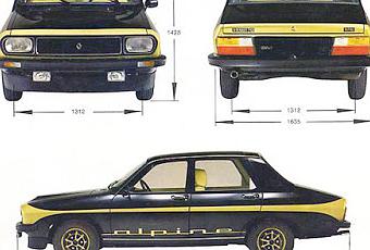 Marca:Renault Modelo:12 Alpine Año:1978Motor:naftero Ubicación:delantero Marca:AlpineCilindros:4 en línea Cilindrada:1.397 cm3Diámetro:76 mm. Carrera:77 mm.Potencia:110 HP SAERPM:5.000 Compresión:9,5:1Tracción: delantera Caja de velocidades:4 marchas hacia adelante totalmente sincronizadas y marcha atrás con palanca al pisoSuspensión delantera:independiente con resortes helicoidalesSuspensión trasera:eje rígido con resortes helicoidalesFrenos delanteros:a disco Frenos traseros:a tambor autocentranteDirección: a piñón y cremalleraNeumáticos:155 SR x 13 pulgadasDimensiones: Largo:4.353 mm. Ancho:1.635 mm. Alto:1.428 mm.Distancia entre ejes:2.441 mm. Trocha delantera:1.312 mm.Trocha trasera:1.312 mm. Plazas:5Peso:956 kg. Velocidad máxima:175 Km/hAutor:Mauricio UldaneEscaneo: Mauricio UldaneFuente: folleto de Renault Argentina