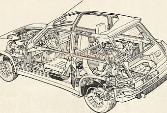 Marca:Renault Modelo:5 Turbo Año:1980Motor:naftero turbo Garrett T3 Ubicación:central Marca:RenaultCilindros:4 en línea Cilindrada:1.397 cm3Diámetro:76 mm. Carrera:77 mm.Potencia:160 CV DIN RPM:6.000 Compresión:7:1Par motor:21,4 mkg DIN / 22,1 Nm ISO RPM:3.250Tracción: trasera Caja de velocidades:5 marchas sincronizadas hacia adelanteSuspensión delantera:independiente con cuadriláteros deformables transversales, barras de torsión y amortiguadores hidráulicosSuspensión trasera:independiente con cuadriláteros deformables transversales, resortes helicoidales y amortiguadores hidráulicosFrenos delanteros:a disco ventilados Frenos traseros:a disco ventiladosNeumáticos:190/55 HR 340 delanteros, 220/55 VR 365 traserosDimensiones: Largo:3.664 mm. Ancho:1.752 mm. Alto:1.323 mm.Distancia entre ejes:2.430 mm. Trocha delantera:1.346 mm.Trocha trasera:1.474 mm. Plazas:2Peso vacío:970 kg. Velocidad máxima:más de 200 Km/h