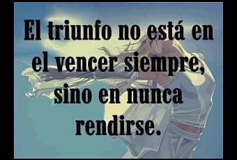 Rendirme… No nací para eso, estoy aquí para pelear, para luchar por mis sueños, se bien que la batalla no es fácil pero no me rendiré, no desfalleceré en esta lucha por conseguir mis metas y objetivos…