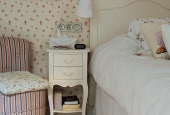 Queda pendiente la mesilla de noche; le hemos apañado un banquito mientras tanto para que tenga, al menos, una pequeña lamparita y sitio para dejar el móvil.