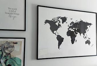 En esta ocasión he querido darle un toque moderno y a la vez viajero, es por eso que aposté por láminas como la Torre Eiffel, o bien el mapamundi.