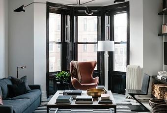 Un espacio con un carácter masculino, elegante y con un cierto toque vintage y retro, que mezcla de manera muy elegante, complementos en negro intenso, con sutiles pinceladas de dorado, en tiradores, complementos o iluminación y que le aportan esa elegancia y distinción, aligerando y sin necesidad de mucho mas.