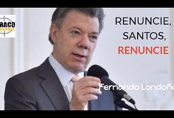 Usted y sus amigotes dilapidaron, en su propio beneficio, una bonanza petrolera que produjo más de ciento veinte mil millones de dólares, de los que no se tiene noticia. Y malbarataron un gigantesco endeudamiento externo, que supera el que contrataron todos los presidentes de Colombia, desde Simón Bolívar hasta Álvaro Uribe. Y eso no se lo perdonan, ni se lo van a perdonar sus gobernados.Usted decretó una Reforma Tributaria que acabó con el empresariado, con la clase media, con todo el mundo. El 32% de las familias colombianas no tiene cómo satisfacer sus necesidades básicas o dicho de otro modo, sufre hambre. Y en sus cuentas de empleo, todo dicho con cifras oficiales, la mitad de la gente con trabajo no tiene empleo formal. En otras palabras, vive del rebusque, si es que a eso puede llamarse vivir.Por inepto y por andar de amigo de los 7.000 bandidos y bandidas de las FARC, usted acabó la industria petrolera. De un millón de barriles diarios de producción ya bajó a 850.000 y tenemos reservas para cuatro años. Pero todavía peor, en este año la sísmica es de cero (0), expresado en letras y números para que no haya duda. Total, que en dos años andaremos de jíquera como decimos los paisas del que carece de todo. Técnicamente, el déficit en cuenta corriente será inmanejable a la vuelta de la esquina y replicaremos con ventaja las colas de los venezolanos a las puertas de los mercados vacíos.Los colombianos saben, bien sabido, todo eso. Y saben que los únicos negocios prósperos son los del narcotráfico y la destrucción inmisericorde de los ríos para robarles el oro. Saben que la industria está postrada, que nadie invierte un peso en el campo, cuando está amenazado de la confiscación de tres millones de hectáreas productivas, más otras muchas ocultas en los acuerdos con las FARC, y saben que los bancos empiezan a acumular una cartera vencida que puede arrastrar el sistema a una situación insostenible. Saben que su salario es el más bajo de América y el desempleo juvenil bate todas las marcas en una región pobre como Latinoamérica. Que la inversión extranjera se acabó, porque los dueños de los capitales no creen en el país ni en usted y no están dispuestos a soportar una carga tributaria que llega al 74%, la tercera más alta del mundo.Buenos motivos para despreciarlo, señor Santos y más que buenas razones para que haga el único gesto de nobleza que se le conozca. ¡Renuncie, Santos, renuncie!
