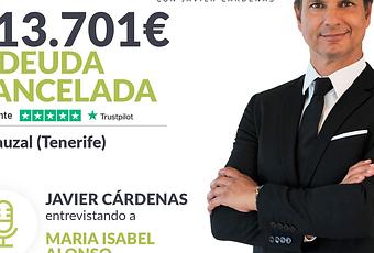 Repara tu Deuda Abogados, despacho de abogados líder en España en la Ley de Segunda Oportunidad, ha conseguido una nueva cancelación de deuda en Canarias. Se trata del caso de María Isabel Alonso, vecina de El Sauzal (Tenerife), que ha sido exonerada de un importe total de 313.701 euros por el Juzgado de Primera Instancia nº3 de San Cristóbal de La Laguna (Tenerife). VER SENTENCIA