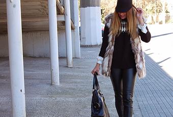 Chaleco / Jacket, Jersey / Sweater, Botines / Boots , Gorro / Hat: ZARA Leggins : H&M Camisa / Shirt : ANGEL SCHLESSER Bolso / Bag: MUSE by YVES SAINT LAURENT Gafas / Sunglasses : AVIATOR by RAIBAN Esmalte de uñas / Nail polish : DRAGÓN by CHANEL