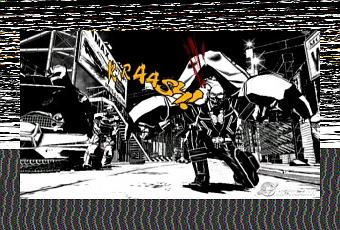 El videojuego está completamente dibujado en blanco y negro como si de un cómic se tratará. Solo veremos color en las onomatopeyas que son amarillas y la sangre que por supuesto es muy abundante y roja.