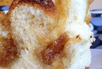 La consistencia es como de torta/brioche, esponjoso, con un delicioso glaseado de azúcar moreno y mantequilla. La elaboración es muy muy sencilla, pero lleva levadura fresca de panadería, lo que significa que tendréis que respetar un tiempo de levado antes de llevarlo al horno. Tengo que confesar que me ha quedado bastante alto, (normalmente es mucho más bajito, pero no tenía un molde de horno más grande, así que se extendió por arriba :O).