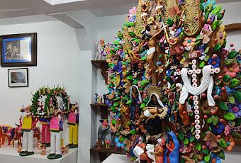 Entre las piezas que elabora están los tradicionales árboles de la vida con diferentes temáticas, la famosa Tlalchana, yuntas, catrinas, cuadrillas, que son figuras de personajes de la vida cotidiana, imágenes religiosas y piezas monumentales.