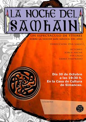 Este Domingo día 30 de Octubre, habrá una nueva representación de la obra de teatro con títeres "La Noche del Samhain". Lo podréis ver en la Casa de Cultura de Simancas (Valladolid), a las 19:30 h.