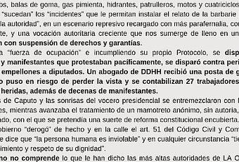 La red de abogados de CADEP (que tenemos disponibles para las marchas), sobre el comienzo de la represión libercipaya.