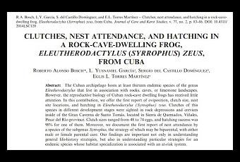 En este trabajo se explica un estudio sobre la reproducción de esta rana en cuevas cubanas, y gracias a que esta publicación está de libre acceso a cualquier persona, tenemos el placer de poder leerlo completamente en el siguiente enlace:
