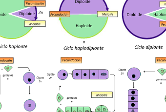 - Los individuos haploides producen, mediante mitosis, esporas haploides que actúan como gametos, fusionándose entre sí y dando lugar a organismos diploides.