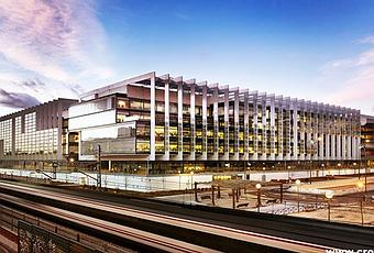 Las vigas de acero tienen una sección muy fina de 20 cm que permite a las cajas para ser apreciados. El nuevo edificio tendrá capacidad para albergar a 4.000 personas y un aparcamiento subterráneo de dos plantas de 2.000 vehículos.