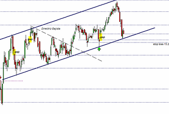 Me he permito marcar dos posibles stop loss con distintos criterios, pero muy próximos entre si. El primero de ellos ajustado a la línea que delimita la parte baja del canal citado y al cierre del gap o hueco alcista más inmediato. El segundo de ellos, queda en la unión de los mínimos relativos más próximos a la cotización actual. Cada uno de ellos presenta sus ventajas e inconvenientes, dependiendo del perfil inversor que manejemos.