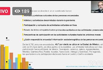 El lanzamiento de la Encuesta Nacional sobre Hábitos y Consumo Cultural 2020 surgió al plantear la interrogante de qué pasa con el público que ya asistía a los museos, que disfrutaba de conciertos y constantemente estaba en actividades artísticas, después de este radical cambio en la vida diaria, derivado de COVID-19.
