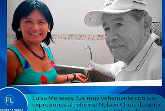 “Si Alex Bazán (Alcalde provincial de Cañete), es un incapaz. A Nelson Chui le falta todo” – expresó la alcaldesa de Pacarán Luisa MenesesPara la alcaldesa del distrito de Pacarán (Cañete) Luisa Meneses Rivadeneyra, el gobernador regional de Lima – Nelson Chui Mejía, tiene todos los méritos para ser tildado de inepto e incompetente.