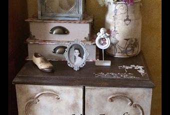 Amor a primera vista esta mesilla y yo.Cazada al vuelo, se vino a casa donde esta mañana ha pasado por un par de manos de pintura acrílica, desgastada a pincel seco, embellecida con stencil y pasta de texturas y forrada en el interior.Así luce ahora en mi casa.!Me encanta!!!