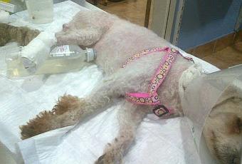 Este perrito fue encontrado por una compañera en un puente temblando...lo recojio muy sucio y lleno de nudos, lo ha llevado al vete para que le cortara el pelo y como podeis apreciar, los nudos que tenia han provocado una herida importante en su patita, parece ser que estrangulaban su pata hasta cortar el riego sanguineo y han provocado una inflamacion muy severa y casi necrosis...hoy se la han limpiado, esperemos que haya solucion, porque de lo contrario habra que amputar...es un macho de tamaño pequeño tipo caniche de unos 6 años de edad, muy cariñoso y tranquilo, el pobrecito ha debido de sufrir mucho, nos tiene muy preocupadas, esperamos que se pueda solucionar...necesitamos ayuda para buscarle una familia que lo quiera como merece, y pase sus ultimos años feliz, alguien que le de tranquilidad y cariño para su recuperacion, si alguien lo reconociera porque se ha extraviado por favor que se ponga en contacto con Cheli...se encuentra en murcia, se entrega con preseguimiento, cartilla de vacunacion, chip, contrato de adopción y desparasitado.