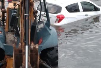 La mujer fue arrastrada por la fuerte corriente por varios cientos de metros hasta el final del bulevar , lugar donde fue rescatada con el uso de maquinaria pesada para lograr aprovechar una de las rampas y empujarla.