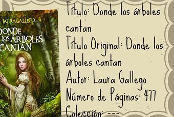 Yo creo que podría dividirse en tres géneros: Fantasía, Literatura Romántica y Drama. Es una historia fantástica por muchas cosas que van haciéndose ver a lo largo del relato (SPOILERComo el hecho de que Uri exista, o las criaturas que viven en el Gran Bosque), me pareció muy bonito todo ese entorno en el que vive Viana, la protagonista, amaría vivir en su mundo. Más o menos cerca de la mitad, Donde los árboles cantan se transforma en algo tan dulce y romántico que creo que se me escaparon algunas lágrimas y sonrisitas tontas. Uri es tan inocente y tan puro, tan lleno de amor, que a veces me resultaba extraño imaginarlo como un adolescente, a veces solo parecía un niño muy viejo y sabio. Pero las peores partes son las dramáticas y algunas en las que verdaderamente te sientes un personaje. Temes por todo, por el reino, por ella, por él, por esto, por lo otro. Este libro logra debilitarte de tal forma que quedas a merced de sus palabras.Hablando de la historia, quiero contarles más o menos de que trata. Empieza en el banquete anual de Nortia, con Viana, una doncella, que esta prometida con Robian (Un joven muy apuesto, se puede decir) Durante la celebración, el antiguo Conde de Monteferro, les advierte que tropas Bárbaras enemigas se aproximan. El padre de Viana, y muchos otros caballeros, incluido Robian, parten para defender el Reinoy Viana y el resto de las mujeres se quedan en Nortia para esperarlos. Pero los Barbaros ganan el combate e invaden Nortia y las muchachas se ven obligadas a separarse de sus familias y comprometerse con los gobernantes Bárbaros. Viana logra escapar de su temible esposo y se adentra en el Gran Bosque, lugar en donde todas las leyendas de su tierra nacieron De verdad me fascinó el personaje de Viana, ella es valiente, amable, educada, simple y hermosa. Logra adaptarse perfectamente a la vida en el bosque y después de mucha práctica se vuelve experta en cosas que en su reino eran consideradas tareas de hombres. A los personajes de este libro no le faltó nada, pero tengo que resaltar que durante las páginas del medio, unas 50 o 60 de ellas, ¡Me costó mucho seguir leyendo! No sé si fue solamente a mi o a ustedes también les pasó (¡¡¡Comenten!!!), pero no me gusta nada que me pase eso mientras leo, ya que me desanima y empiezo a replantearme la lectura. Al terminar esa parte que me costaba, descubrí que valió la pena seguir leyendo (El final es realmente WOW)y me enamore completamente de cada letra. Laura Gallego tiene una manera de escribir sus historias que parece que todo salta de la página y se mueve a tu alrededor, o al revés, ¡Tú saltas dentro de la página! Léanlo, se los recomiendo, y ¡Recomiéndenlo si ya lo leyeron! Yo lo leí cuando tenía 11 añospero es apto para cualquier edad. Además la portada es hermosísima, si prestas atención se pueden ver escondidos entre la vegetación algunos seres mágicos que viven en la historia.