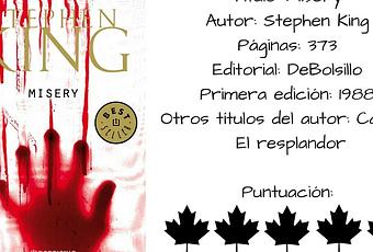 Poco a poco voy leyendo más novelas de Stephen King, y tengo que reconocer que a Misery le tenía muchas ganas. Es un libro que he disfrutado de principio a fin y que me hizo pasar realmente miedo, esto ya os lo explico en la reseña.
