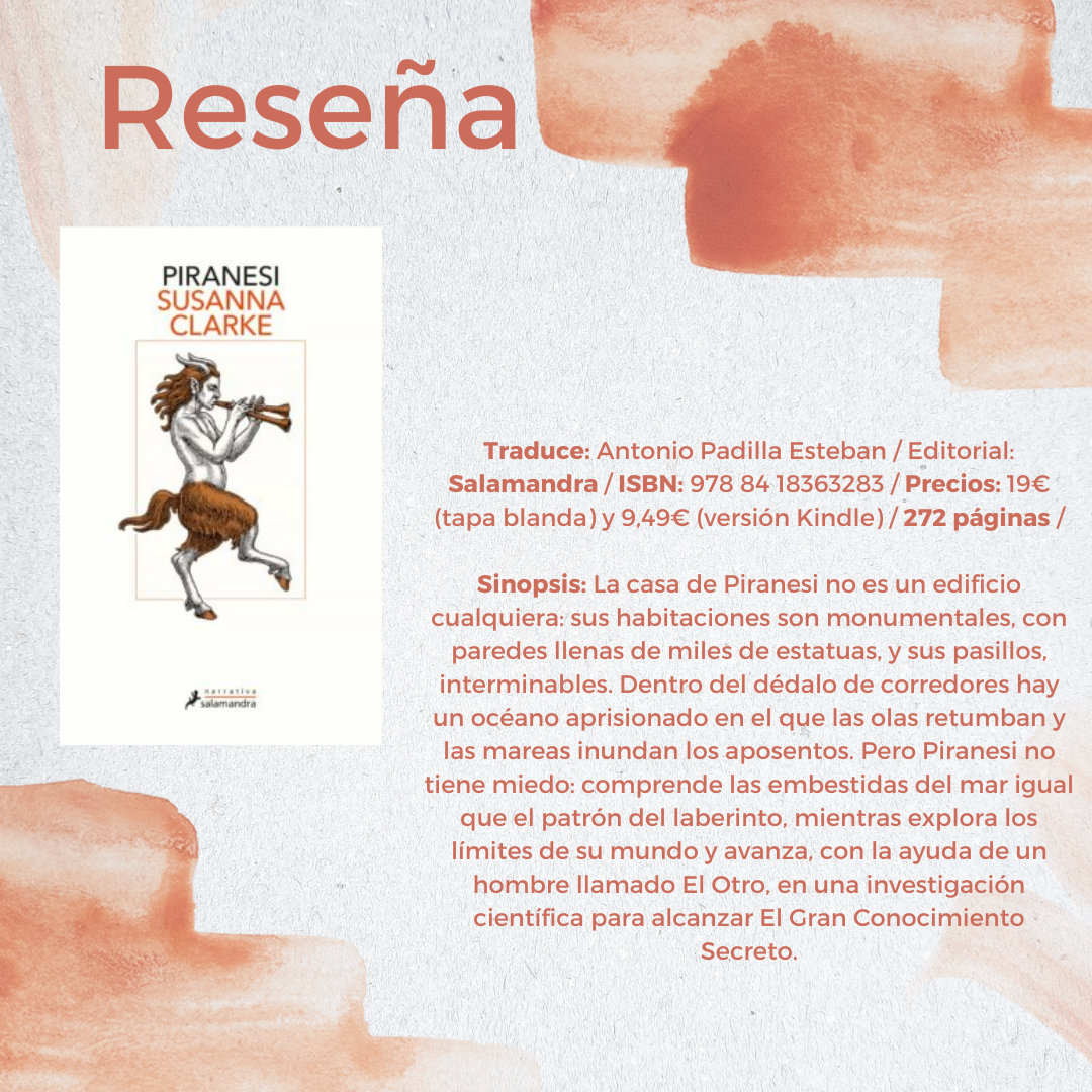 Dulce primero, sibilina después; Piranesi es una de esas novelas que llegan para quedarse. Dejaos acompañar por la prosa de Susana Clarke. No os vais a arrepentir.