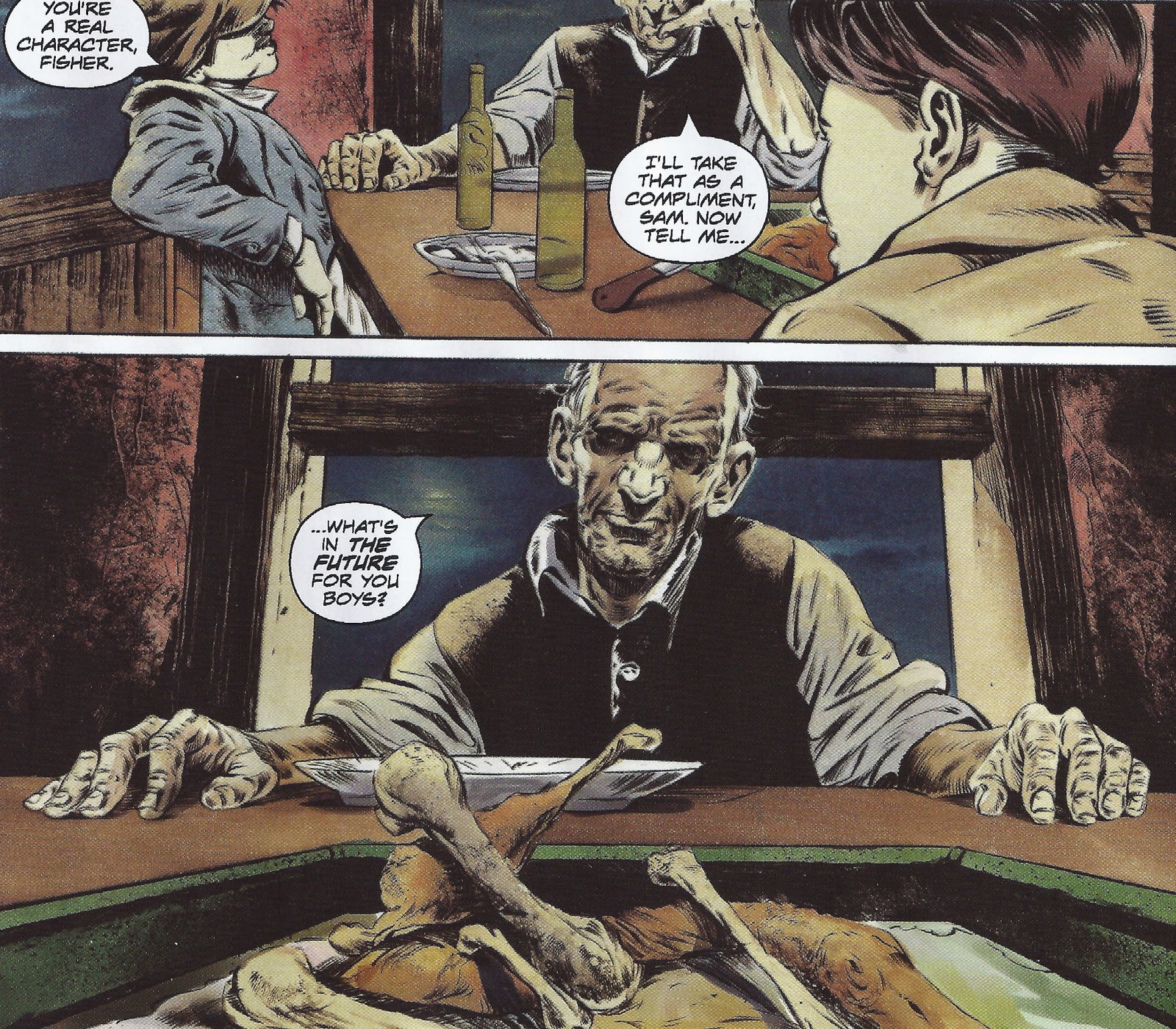 Scott Snyder se está convirtiendo en un experto en explotar el concepto de monstruos (en el sentido más fantástico o más humano de la palabra) en épocas pasadas en la historia de los EEUU.American vampire es un claro ejemplo, y Severed también se podría incluir en esta categoría.Snyder, con la ayuda de Scott Tuft en el guión explora aquí dos mitologías, la de aquella América rural, profunda, de principios del siglo XX y la del asesino en serie, una figura especialmente asociada a los EEUU.