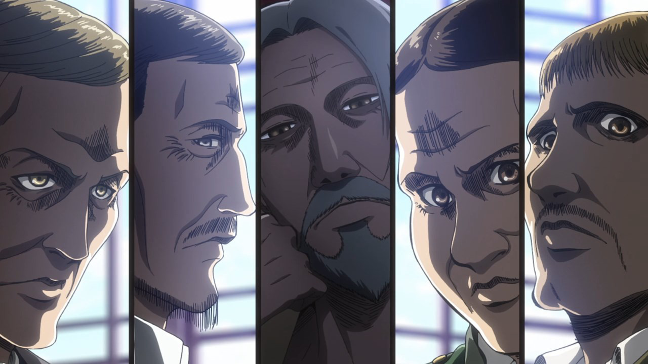 Entonces acusan a Erwin de un asesinato que no realizó, además de no querer entregar a Eren al gobierno, Erwin le cuenta que es un factor necesario para proteger la humanidad, pero los altos mandos no aprueban nada de ello, de pronto introducen al comandante Pixie quien encabeza los Tropas Estacionarias, de acuerdo a los lazos con la Legión de Reconocimiento, Pixie disimula no tener estrecho vinculo con ellos con total naturalidad, haciéndoles saber de que si dicha legión causará una guerra, no fuese incorrecto borrarlos del mapa. Sin embargo, el gobierno no debiese desilusionarse si sus hombres fracasan luego de perder a dicha legión, de tal forma que los ministros discuten sobre ello.