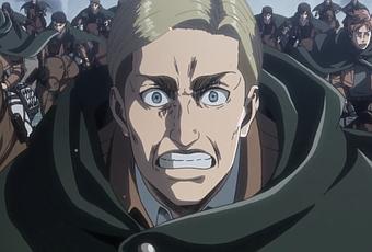 El cual le hacía saber los motivos y recalcado las razones de sus acciones. Así, como luego Reiner motiva a Bertholdt a actuar por sus propias decisiones si las cosas se complican y así no depender tanto de los demás. De regreso a la actualidad. Bertholdt espera la señal de ataque. No obstante, no tiene idea de que Reiner ha sido herido por sus antiguos camaradas. Sin embargo, la capitana Hange sabe perfectamente que aún no han terminado con Reiner, por lo que piensan dar el golpe de gracia para acabar con el. Armin está preocupado y Mikasa se acerca del mismo modo.