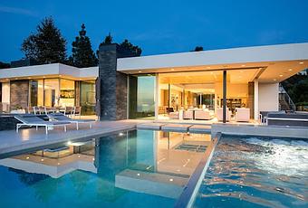 Todos los materiales son muy actuales y el mobiliario moderno, las vistas son increibles hacia las colinas de Beverly Hills, su contrafrente se destaca por sus muros vidriados que cierran los grandes y jugados voladizos que se prolongan en terraza expansion, donde se ubican las gran piscina, el spa y el fogon.