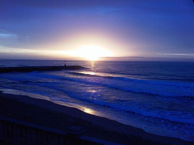 Panorámica desde la terraza en la playa de Sitges poco antes de las 8 de la mañana mientras saboreábamos un café...